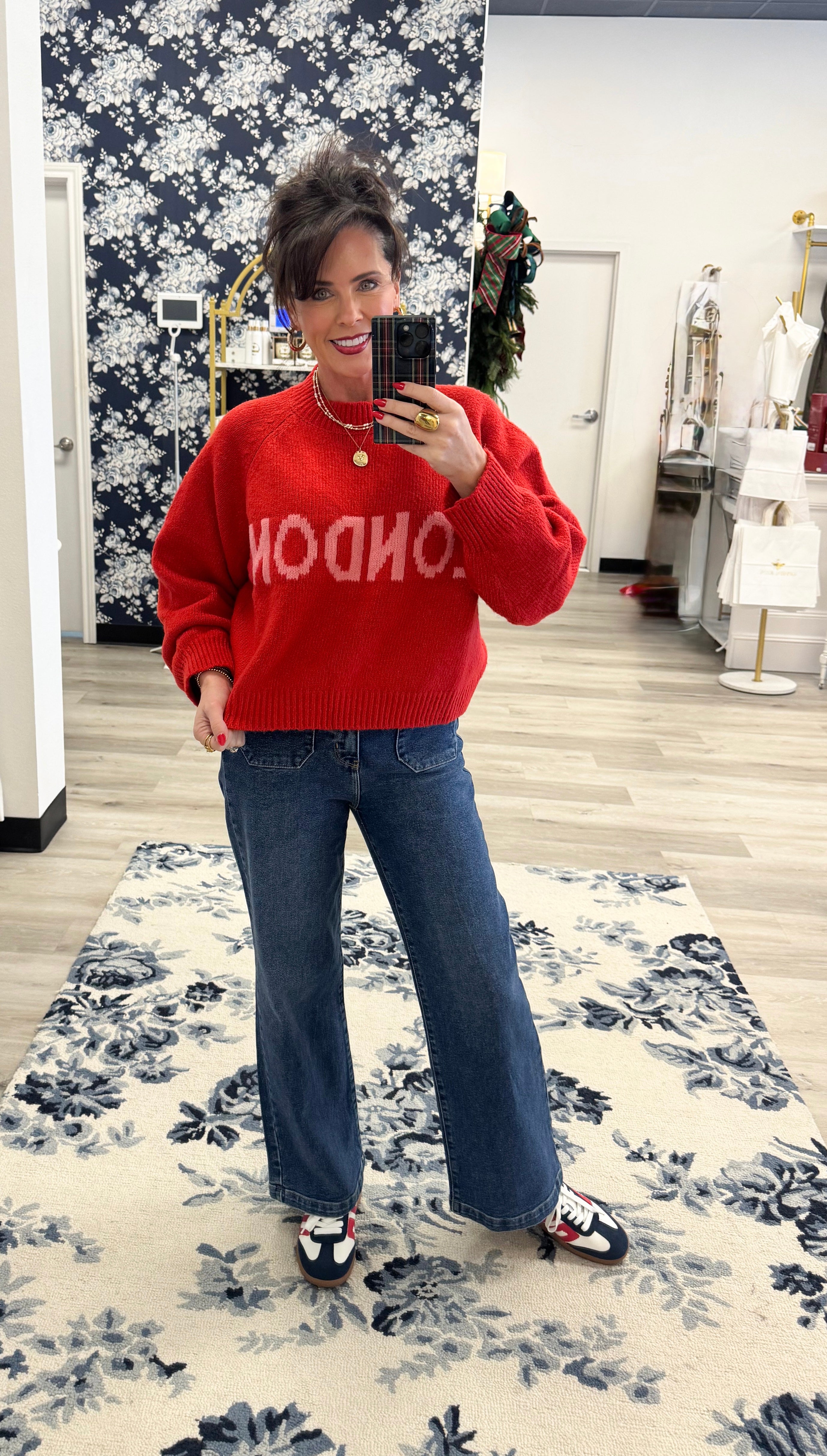 Elevate your wardrobe with this striking red sweater, featuring a sophisticated pink "London" letter design across the front. The bold graphic adds contemporary flair while the classic red base ensures versatile styling for any occasion. Perfect for layering or wearing solo, this piece combines timeless appeal with modern edge. A refined choice for those who appreciate understated luxury with a touch of urban sophistication.