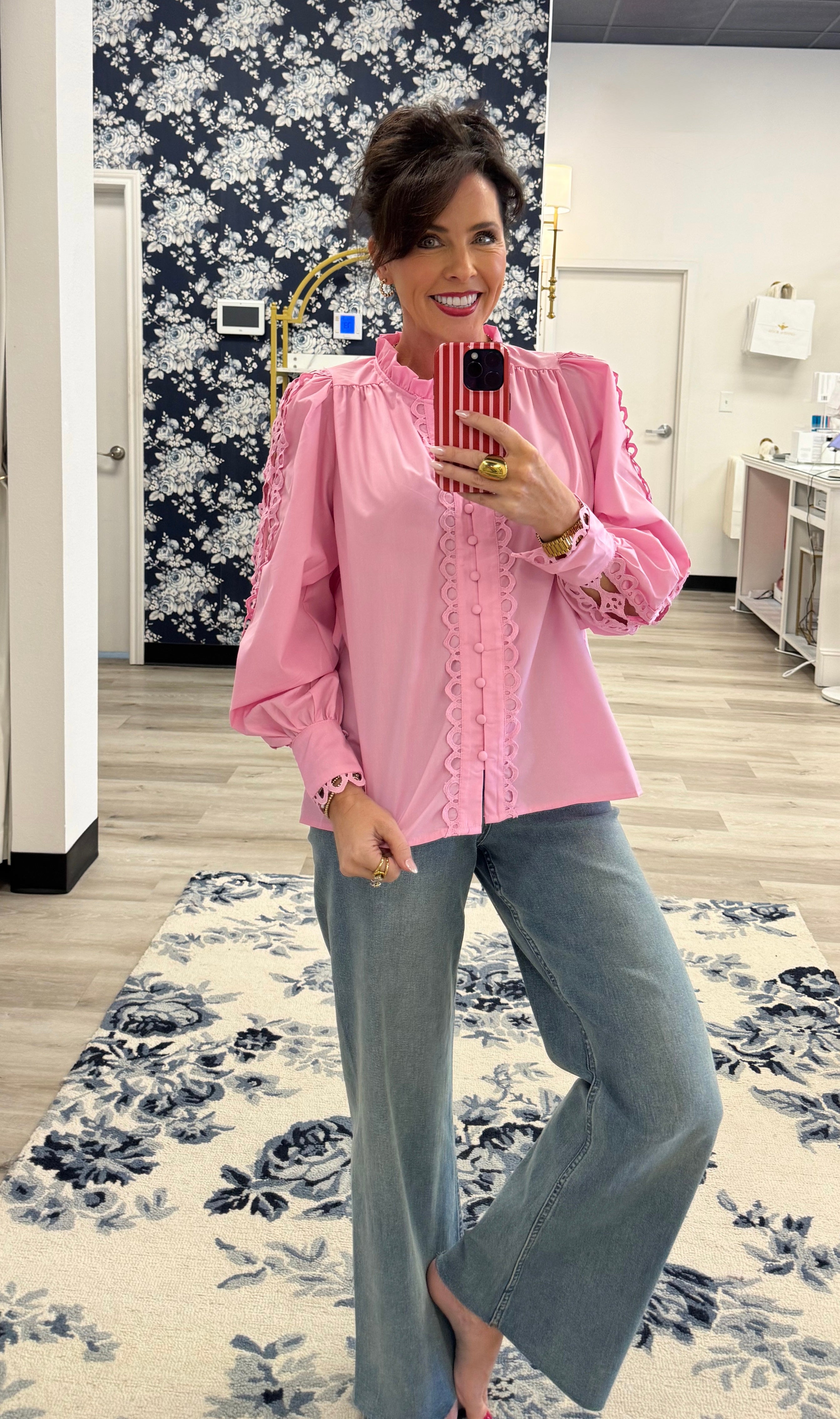 The Winfred Top brings understated elegance to your everyday wardrobe. This light pink long-sleeve shirt features delicate cutout details along the sleeves, adding a refined touch of visual interest without compromising comfort. Perfect for layering or wearing solo, it transitions seamlessly from office to weekend. The soft hue and thoughtful design make it a versatile staple for the modern, style-conscious wardrobe.